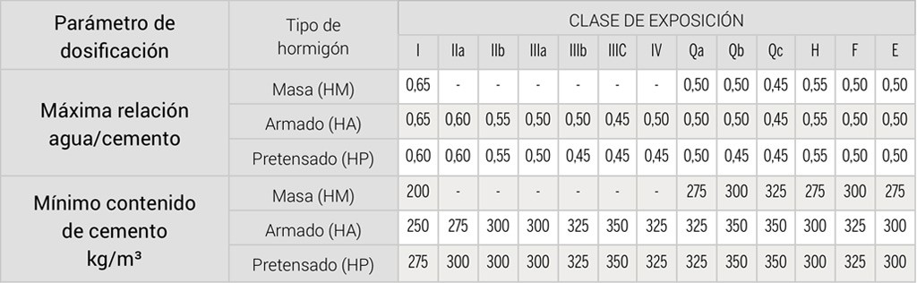 Hormigones estructurales según EHE: Hormigón en masa (HM), Hormigón armado (HA), Hormigón con fibras de propileno.