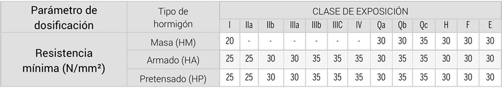 RESISTENCIAS MÍNIMAS COMPATIBLES CON LOS REQUISITOS DE DURABILIDAD